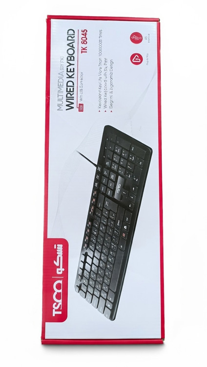 کیبورد با سیم مولتیمدیا تسکو مدل TK 8045 – انتخاب حرفهای برای کار و سرگرمی! اگر دنبال یک کیبورد باکیفیت، بادوام و پر از امکانات هستید که هم برای کار روزانه عالی باشه و هم برای کنترل موسیقی و ویدیو، تسکو TK 8045 دقیقاً همونه که میخواید! چرا این کیبورد رو انتخاب کنید؟اتصال سیمی USB مطمئن: بدون تأخیر، بدون نیاز به باتری – فقط وصل کن و شروع کن!